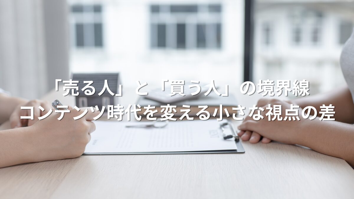 マインド 「売る人」と「買う人」の境界線:コンテンツ時代を変える小さな視点の差 「副業を始めたい」「いつか自分の経験を活かして、商品を作ってみたい」そんな想いを抱えながらも、気づけば、何も変わらないまま1年が経っていたこれ、僕自身も通ってきた道なんですよね。noteやBrainで活躍してる人を見るたびに、「すごいなぁ」... 2025.09.26 マインド