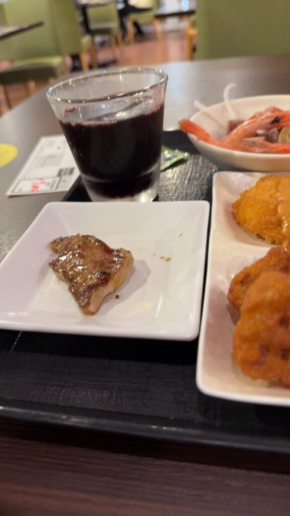 ライブキッチンで焼いてたステーキをいただきました。